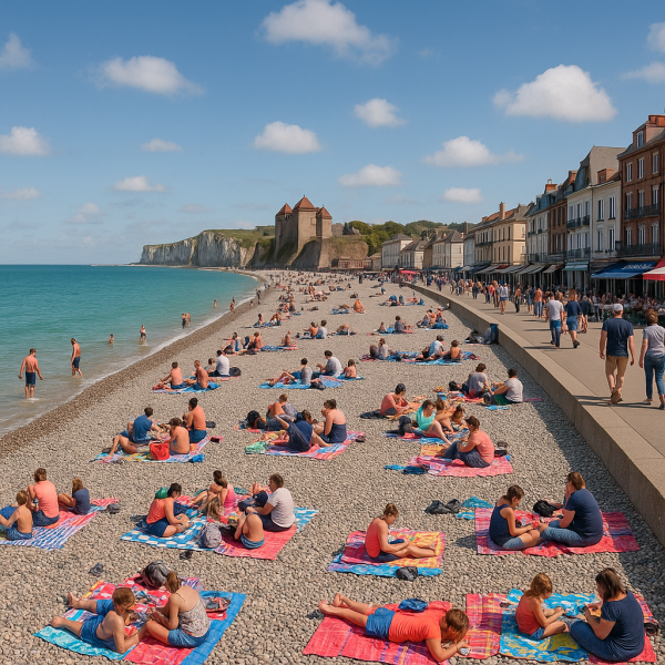 Dieppe, située à environ 196 km de Paris, est une des plages les plus accessibles. Connue pour ses galets, cette plage offre une belle promenade le long de la mer, idéale pour des balades relaxantes. Ses restaurants de fruits de mer sont réputés, et vous pourrez même visiter le château de Dieppe, qui abrite un musée de l’histoire locale.